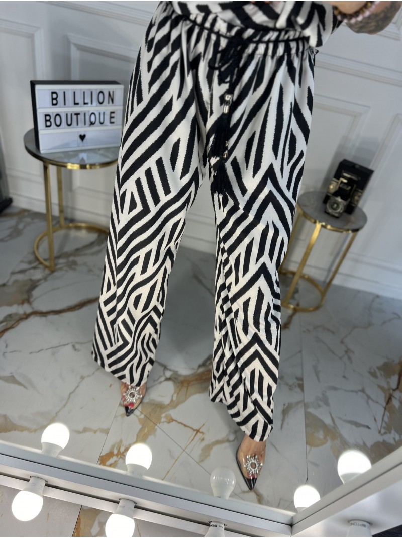 Dviejų dalių kostiumėlis su kelnėmissatino stiliaus medžiagos. Kelnės su gumakomplekte įeina dirželis dovanų. Labai dailus klasikinio stiliaus kostiumėlis platėjančio stiliaus kelnytėmis.