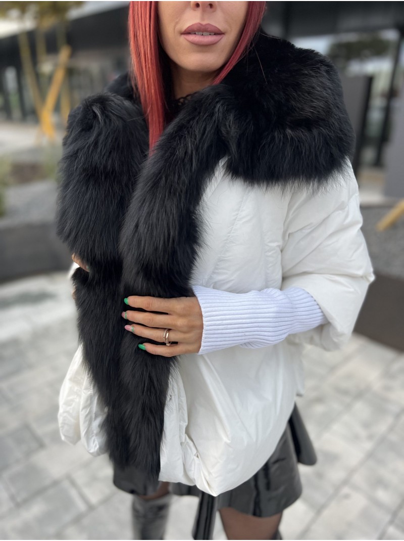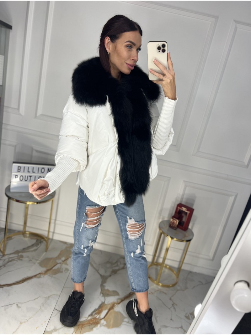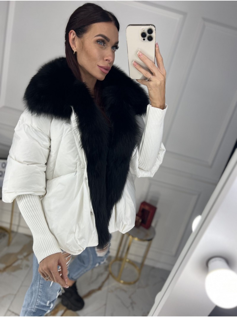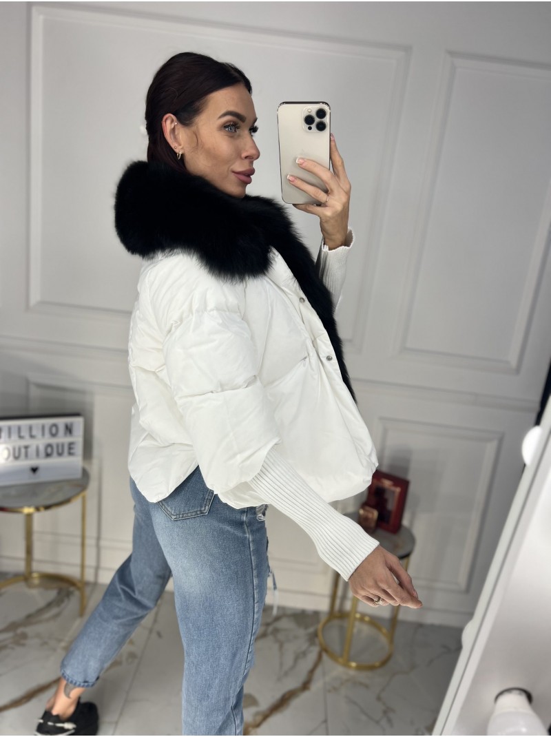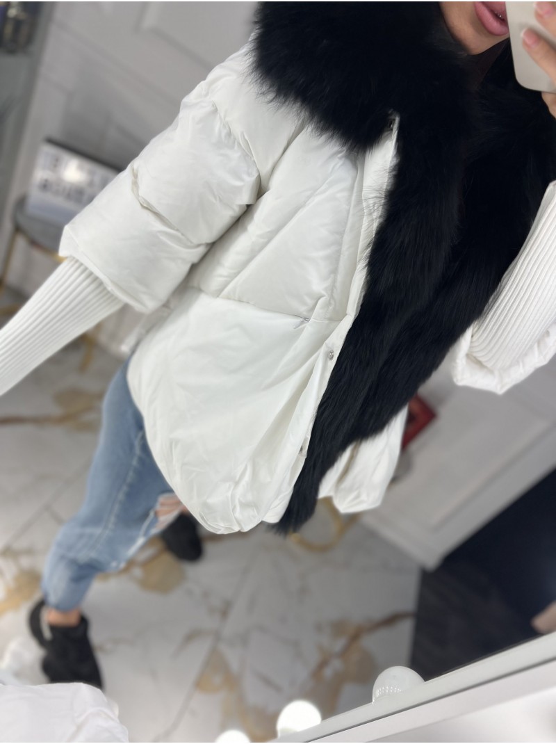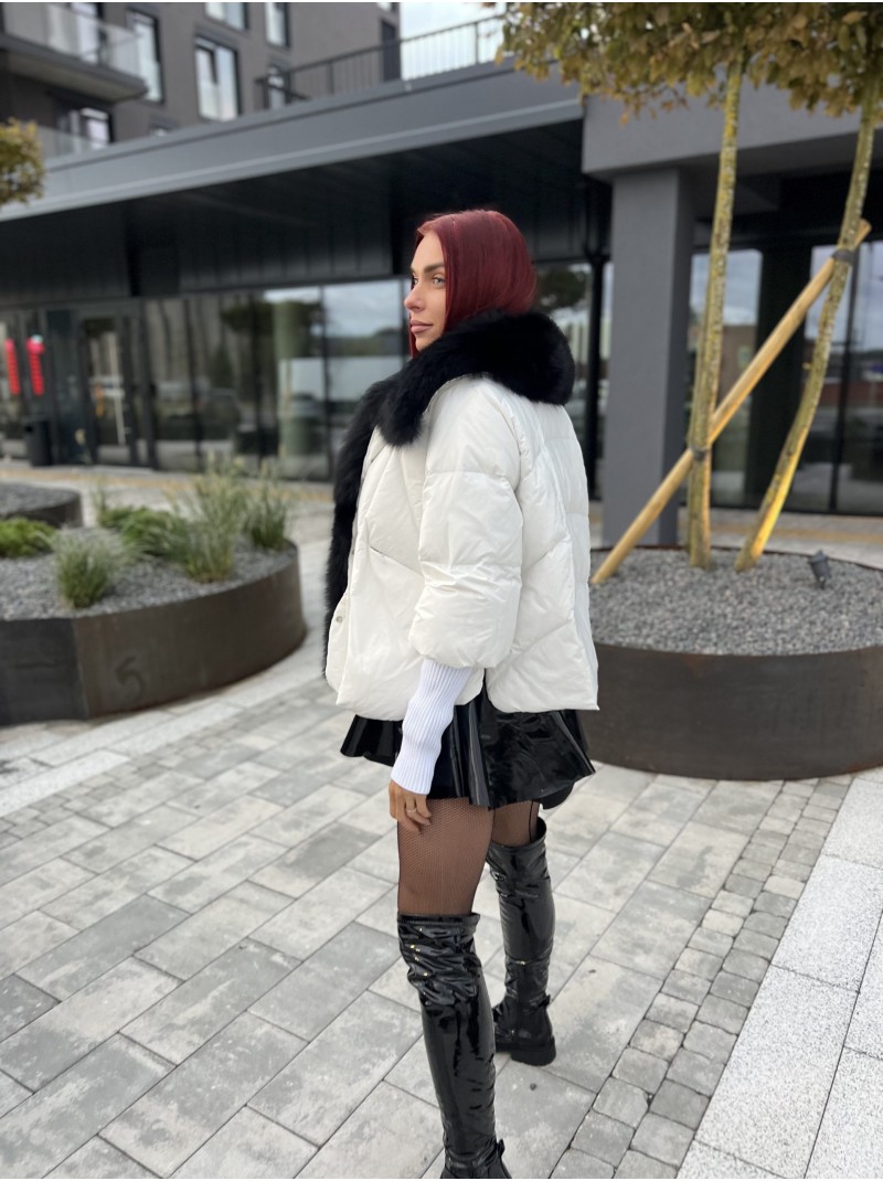 PŪKINĖ STRIUKĖ SU NAT.KAILIU(BALTA SU JUODU)