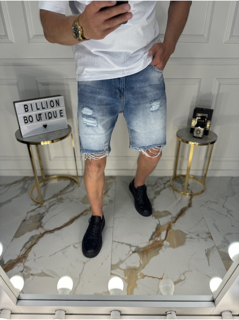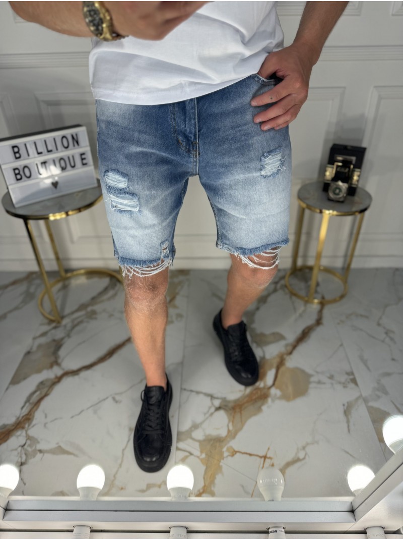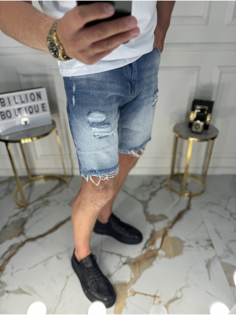 PLATESNI MĖLYNI DŽINSINIAI ŠORTAI