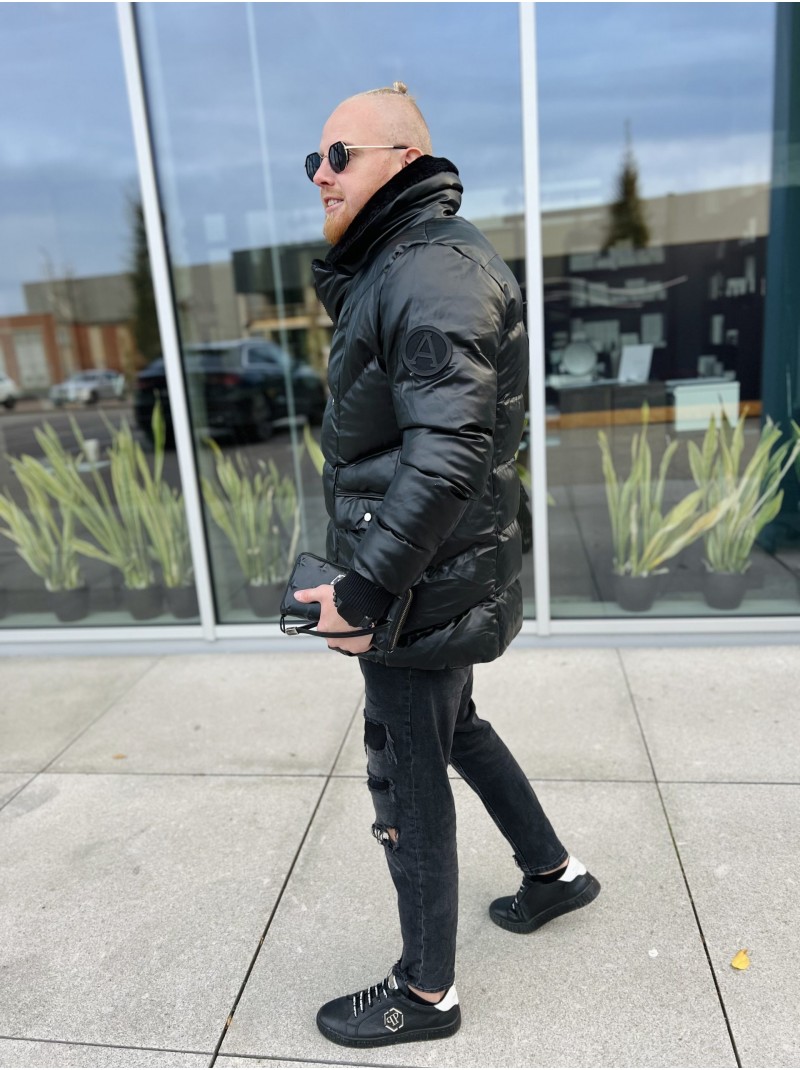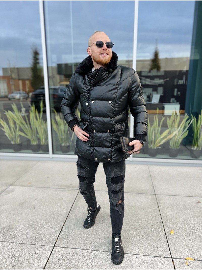 Vyriška pusilgė striukė su kailiu.